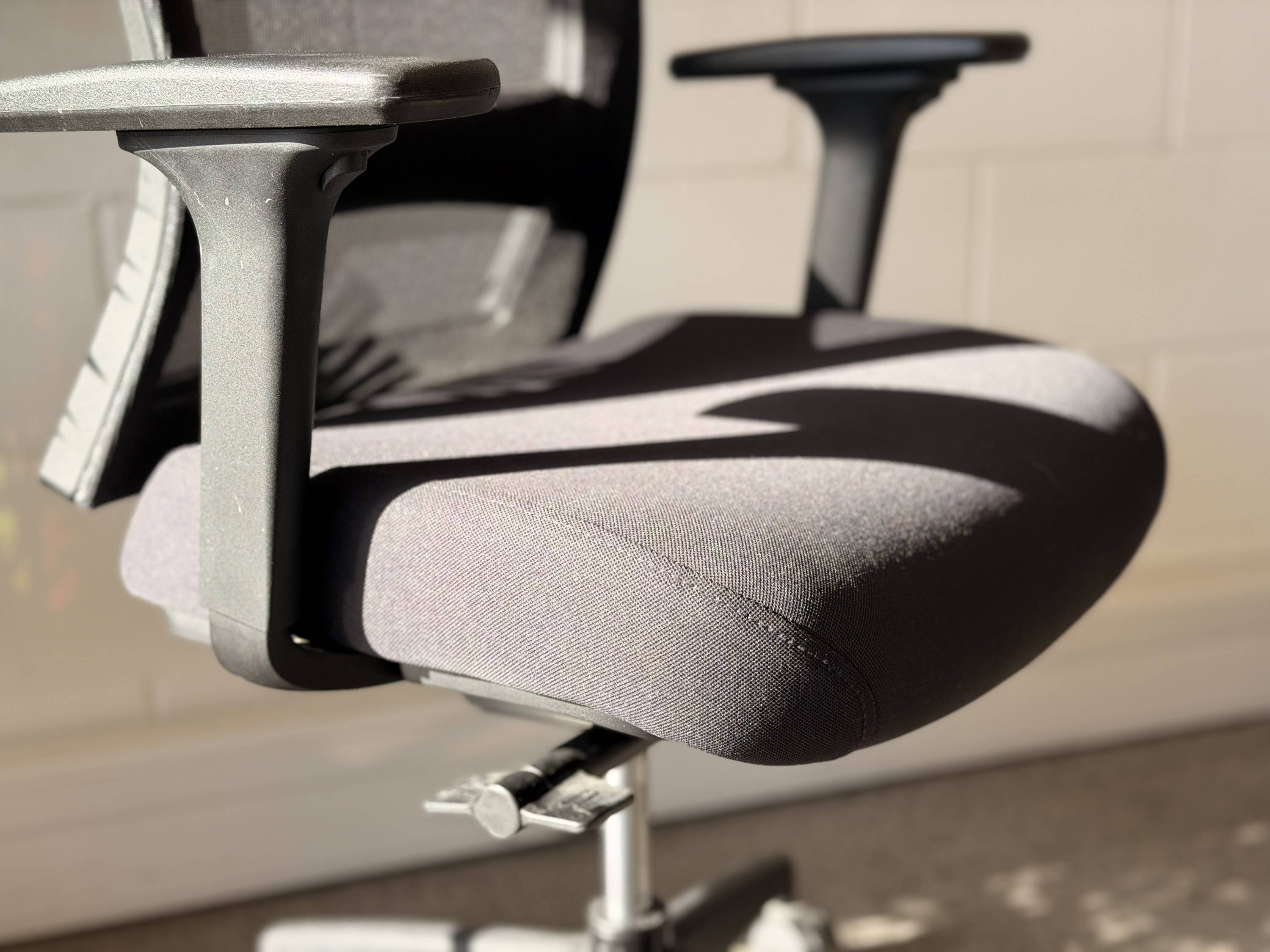 - Mesh back with natural lumbar curve — breathable, supportive, and still sharp after years of use