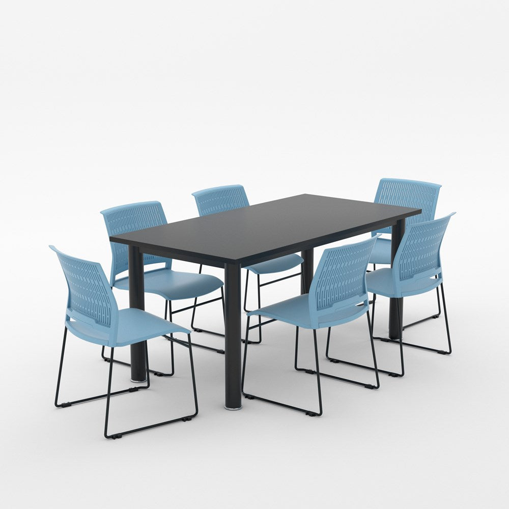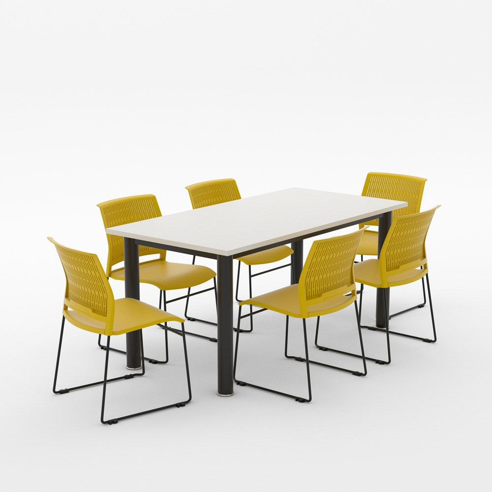 The Alti Deluxe Canteen package offers a super strong frame with 75mm dia round legs and a 25mm top. The chairs have a padded fabric seat and together offer a great upgrade for your lunchroom
