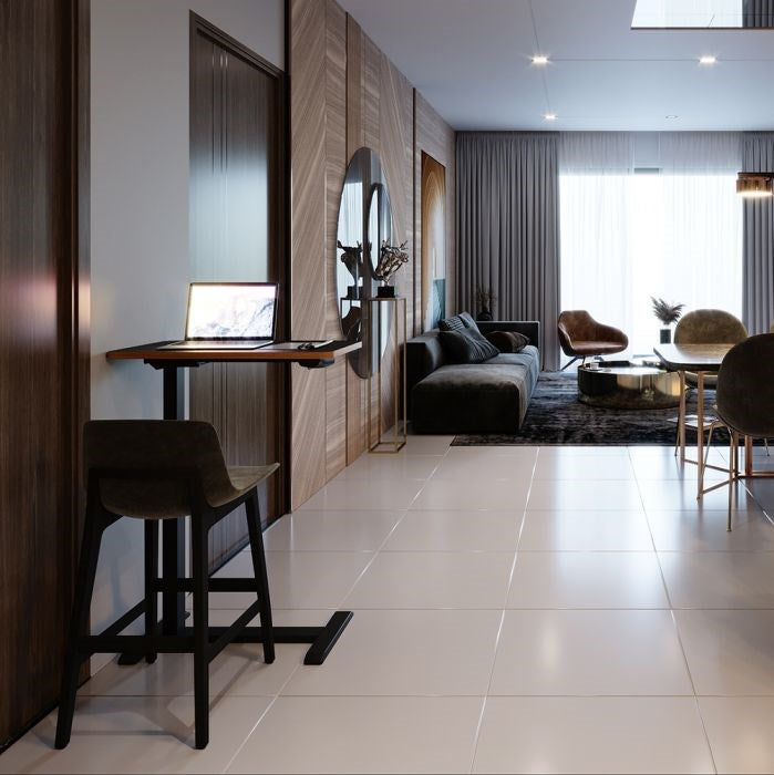 This compact unit is your economical and practical work from home solution. Featuring hidden castors, the Malmo is designed to work where you are—whether you are standing in the kitchen, sitting on the lounge or comfortable in bed, this portable, electric work desk can manoeuvre and adjust to your height and position; seated or standing. From a seated, temporary office desk to a standing desk, the Malmo seamlessly extends and lowers between 650-1030mm with the click of a button to suit your environment.