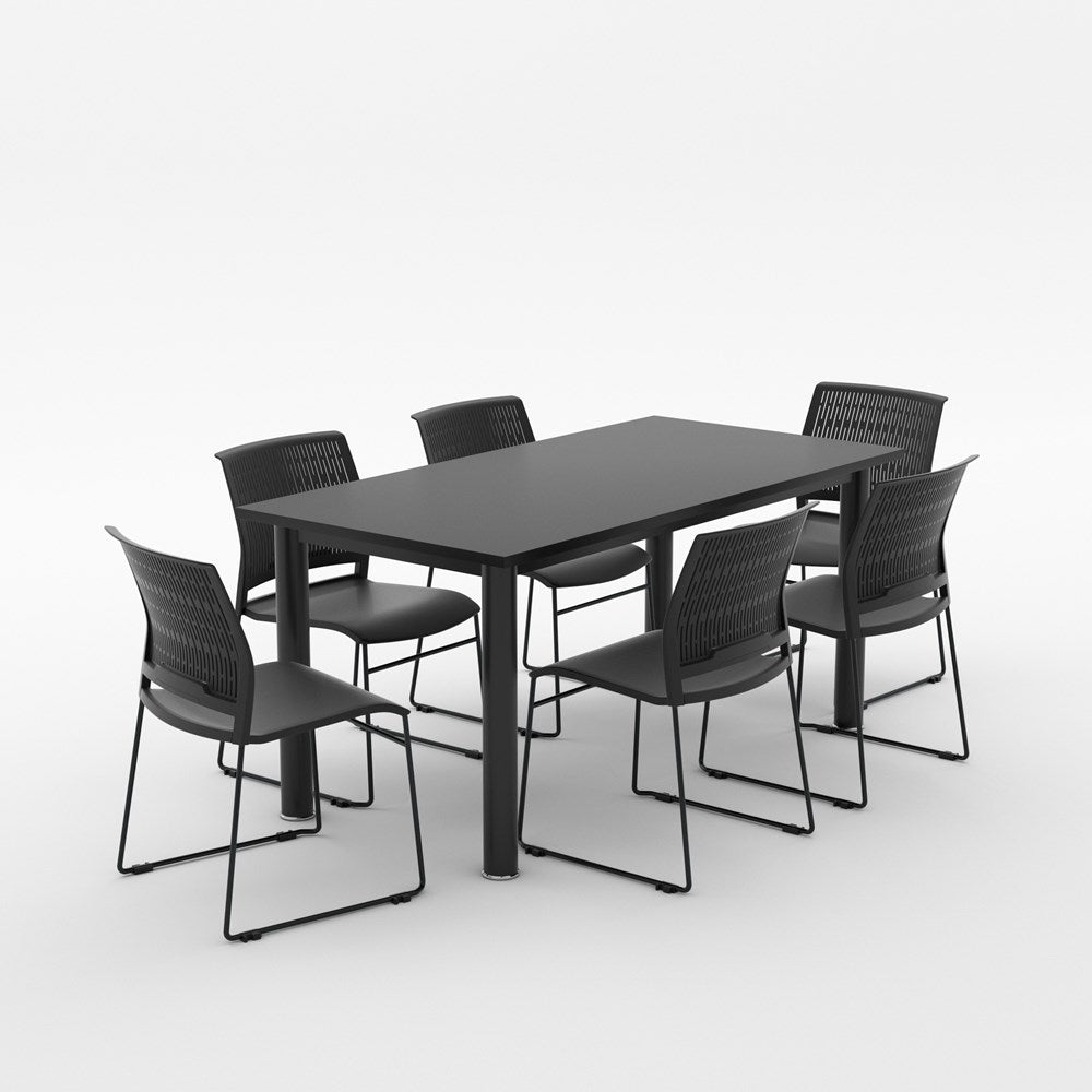 The Alti Deluxe Canteen package offers a super strong frame with 75mm dia round legs and a 25mm top. The chairs have a padded fabric seat and together offer a great upgrade for your lunchroom