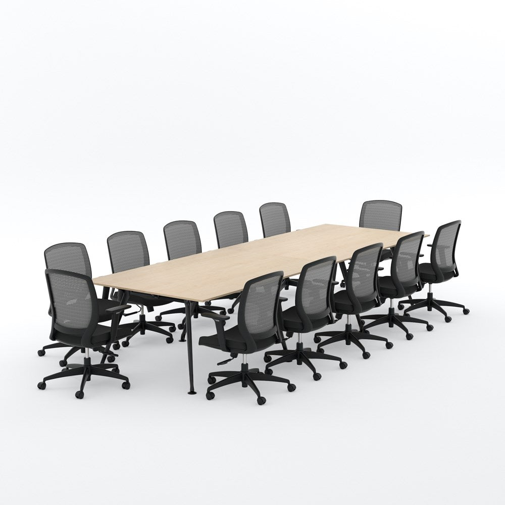 Euro Boardroom Table 3600 x 1200 with Flex Chair Package-Meeting Room Furniture-Affinity Maple-Black Leg-North Island (Ground Floor)-Commercial Traders - Office Furniture