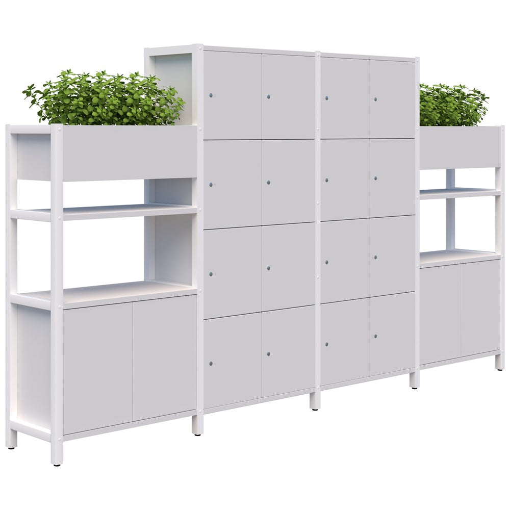 With the Grid 40 you can configure your own feature storage, planter wall, or workspace zone divider, using our frame and storage components.