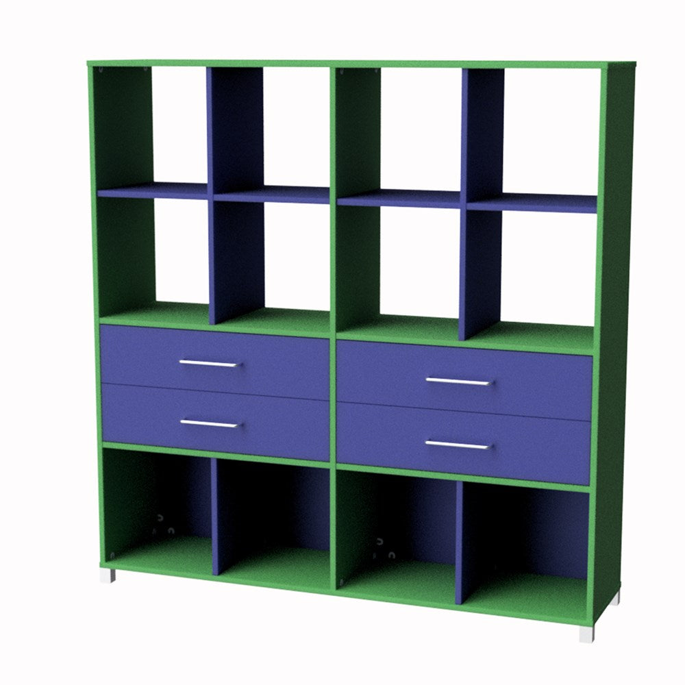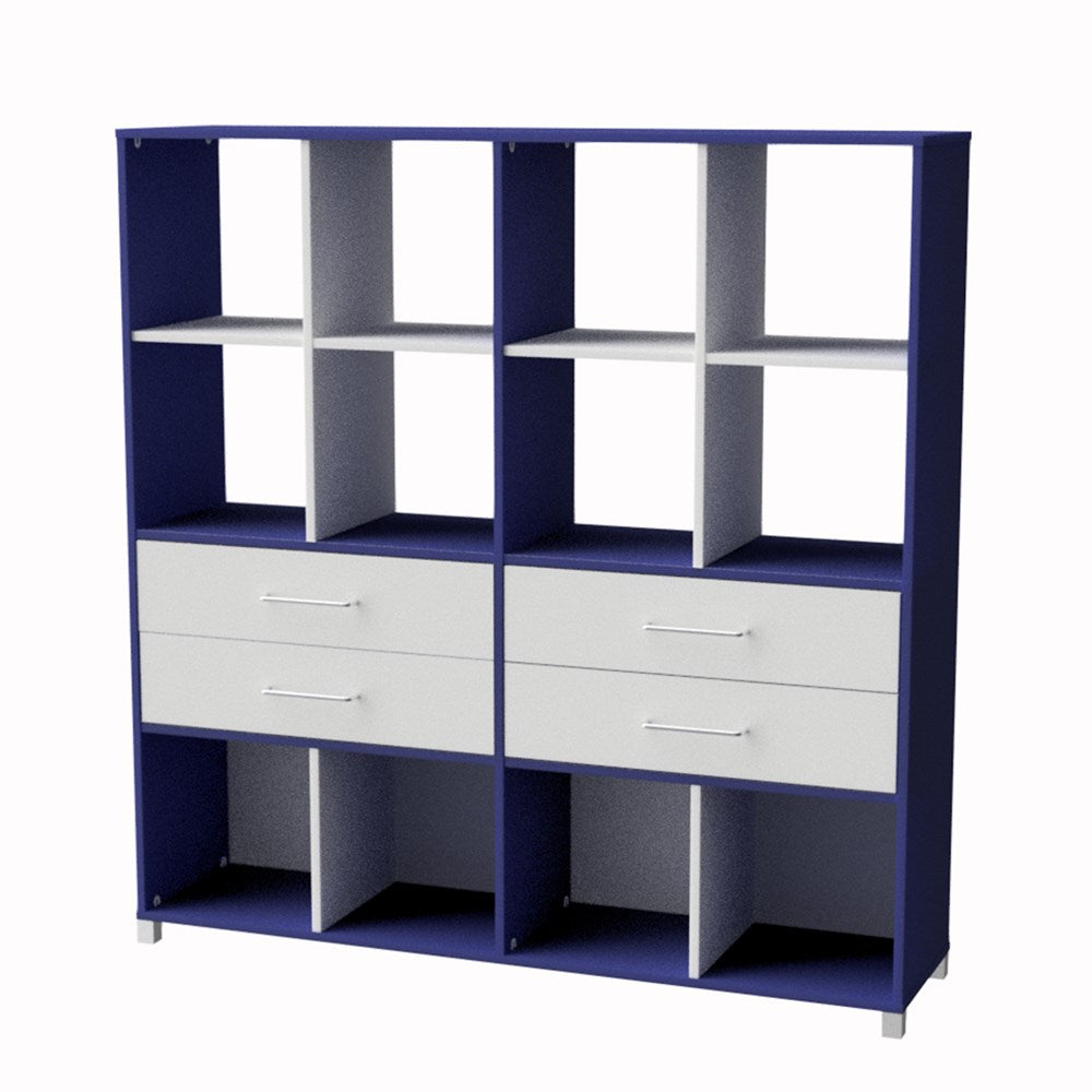 Storage Unit 12 Cube 4 Drawer-Education Furniture-Blue/White-Commercial Traders - Office Furniture