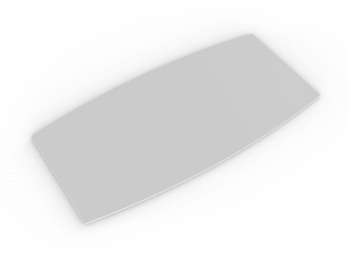 2400mm x 1200mm Cubit boardroom table worktop (Boat shaped). Commercial-grade 25mm construction finished in melamine with 2mm PVC edge - Pre-drilled holes.
