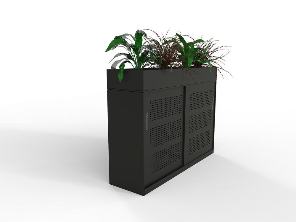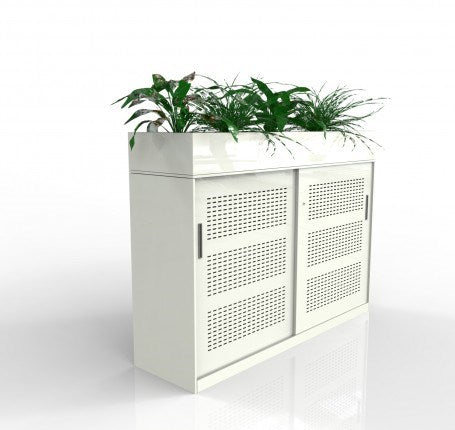 The Steel Slider features perforated patterned doors which can be treated with acoustic materials to assist with the absorption of noise throughout open plan work spaces. Our Steel Slider is available on it’s own or with a planter box.